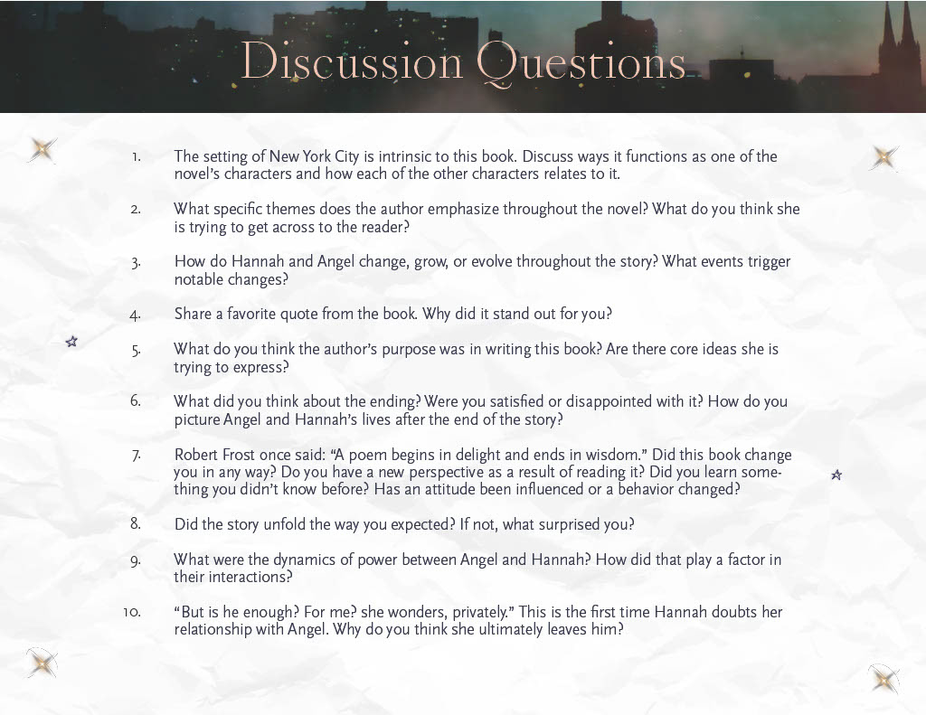 c. 2021, Book Club Kit for Angel & Hannah by Isle Yi Park. Designed for Random House Publishing Group.